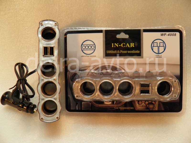 РАЗВЕТВИТЕЛЬ 4 ГНЕЗДА С 2 USB