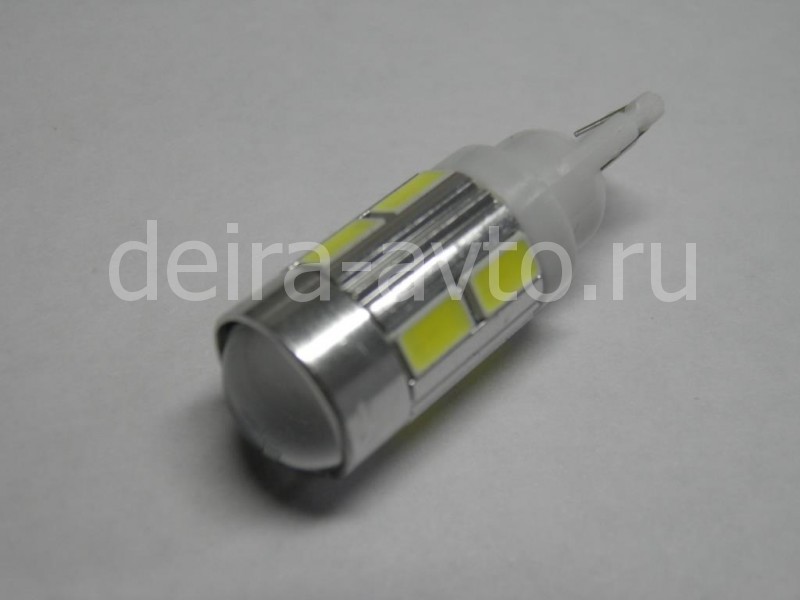 ЛАМПА СВЕТОДИОДНАЯ T10 10SMD ЛИНЗА БЕЛАЯ (1628)